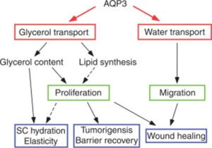 Mariko Hara-Chikuma, A.S. Verkman, Roles of Aquaporin-3 in the Epidermis, Journal of Investigative Dermatology, Volume 128, Issue 9, 2008, Pages 2145-2151, ISSN 0022-202X, (link – https://doi.org/10.1038/jid.2008.70)