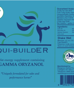Equi-BuildER contains rice bran oil and gamma oryzanol that has been uniquely formulated for sales and performance horses. Rice bran oil delivers extra cool calories without making your horse hot to handle while promoting muscle building and peak performance. It’s important for race and competition horses to not lose muscle while in strenuous training.